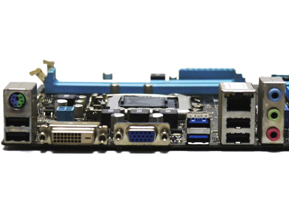 1x PS/2 (мышь или клавиатура); 1x VGA, 1x DVI; 4x USB2.0; 2x USB3.0; 1x LAN RJ-45; 3x Audio jack |