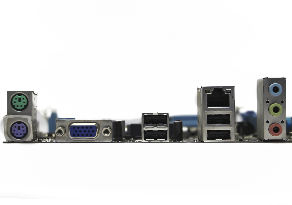 1x PS/2 (клавиатура ),1x PS/2 (мышь); 1x VGA; 4x USB2.0; 1x LAN RJ-45; 3x Audio jack |