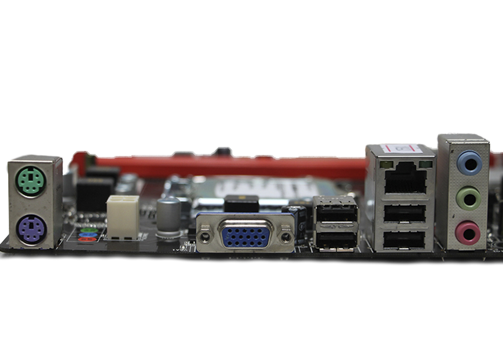 1x PS/2 (клавиатура ),1x PS/2 (мышь); 1x VGA; 4x USB2.0; 1x LAN RJ-45; 3x Audio jack |