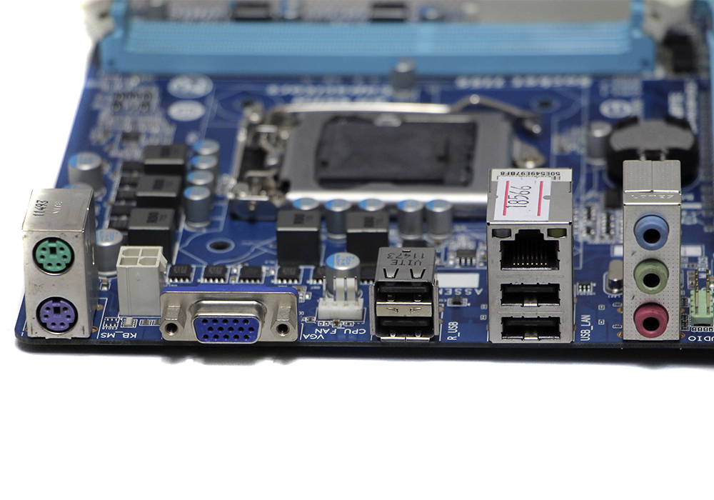 1x PS/2 (клавиатура ),1x PS/2 (мышь); 1x VGA; 4x USB2.0; 1x LAN RJ-45; 3x Audio jack |