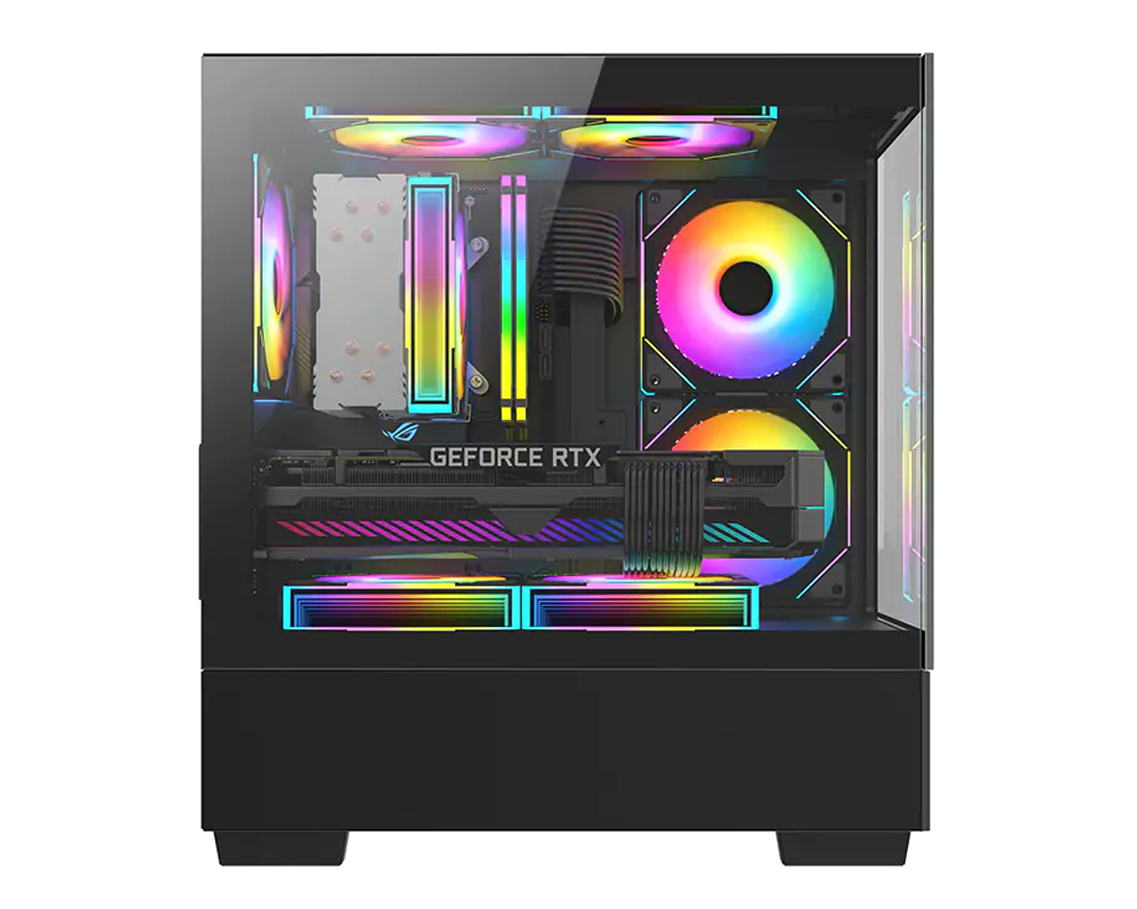 | Особенности: | Панели спереди и сбоку из каленого стекла, 3 вентилятора с FRGB подсветкой |
