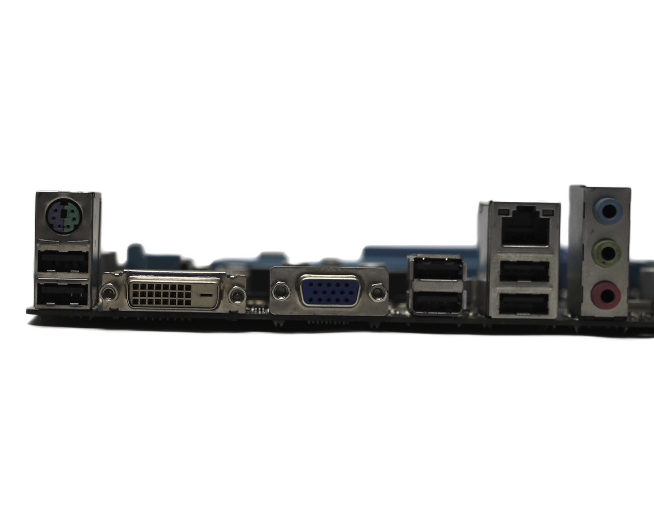 1x PS/2 (мышь или клавиатура); 1x VGA, 1x DVI; 6x USB2.0; 1x LAN RJ-45; 3x Audio jack |